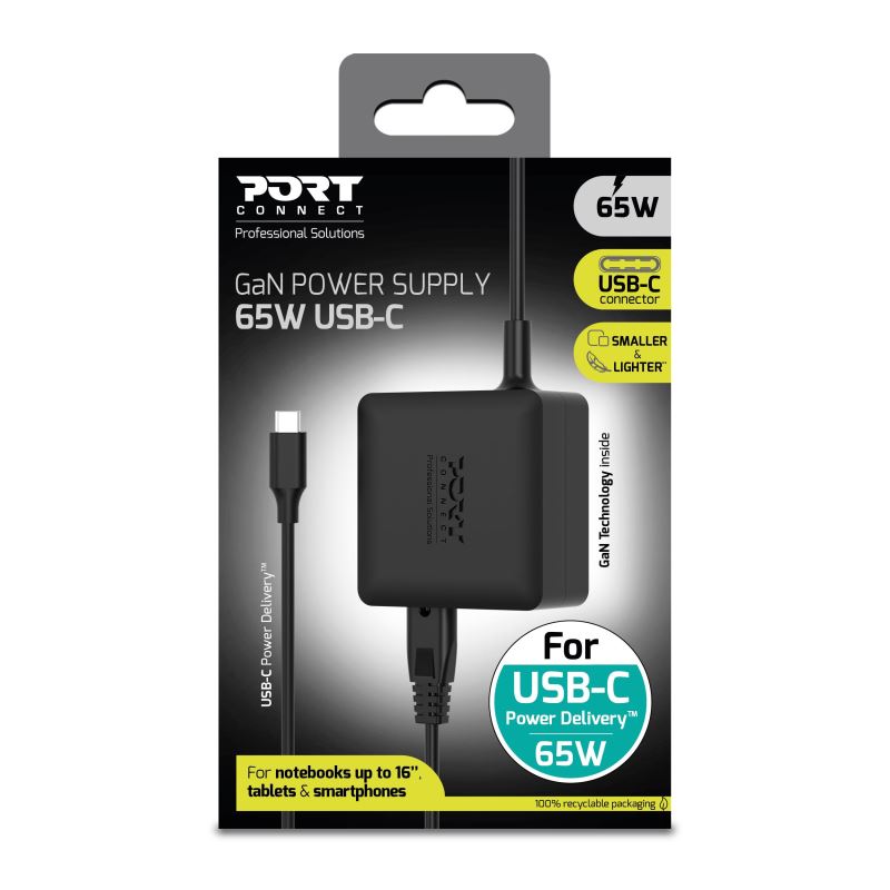 PORT CONNECT GaN2 síťový napájecí adaptér USB-C Power Delivery, 65 W, černý