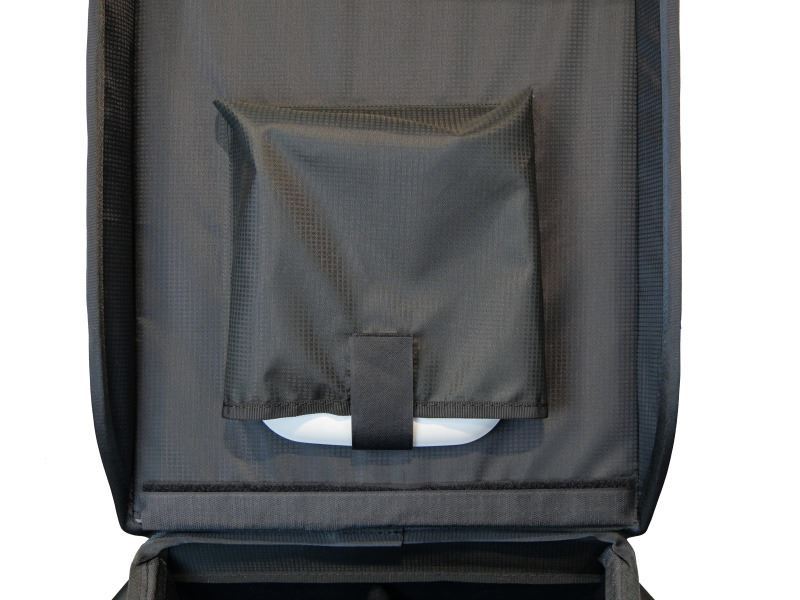 - Pevné pouzdro s madlem a kolečky pro přepravu mobilních zařízení