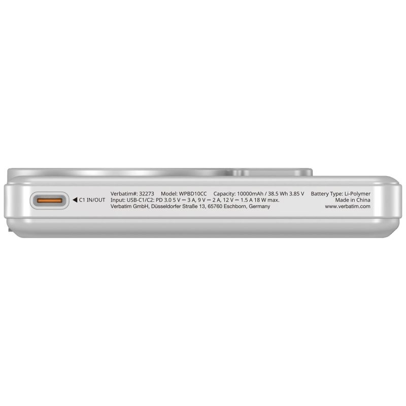 Tato prémiová powerbanka Verbatim nabízí kapacitu 10 000 mAh pro pohodlné nabíjení více zařízení současně.