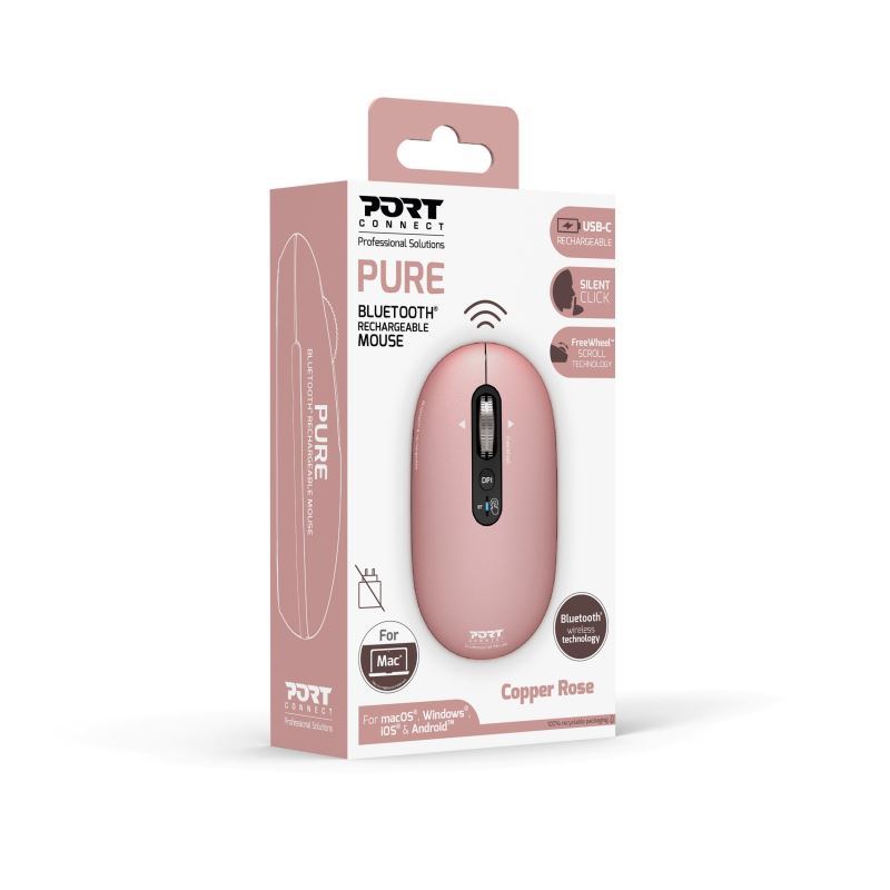PORT CONNECT Pure MAC, Wireless Rechargeable Mouse, Bluetooth,FreeWheel, 3200 DPI Copper ROSE
