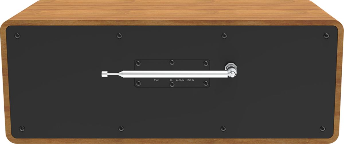 The radio has a headphone output, AUX input and USB charging for external devices.