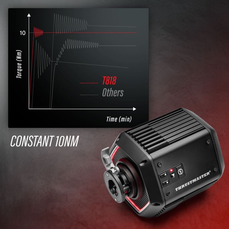 The Thrustmaster T818 Black Edition is a Direct Drive base for PC that provides undistorted Force Feedback and demanding torque of up to 10 N·m.