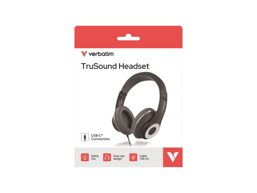 Verbatim TruSound - Wired over-ear headset with USB-C connector designed for everyday work, study and multimedia use on modern devices.