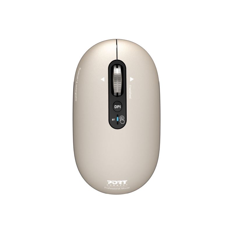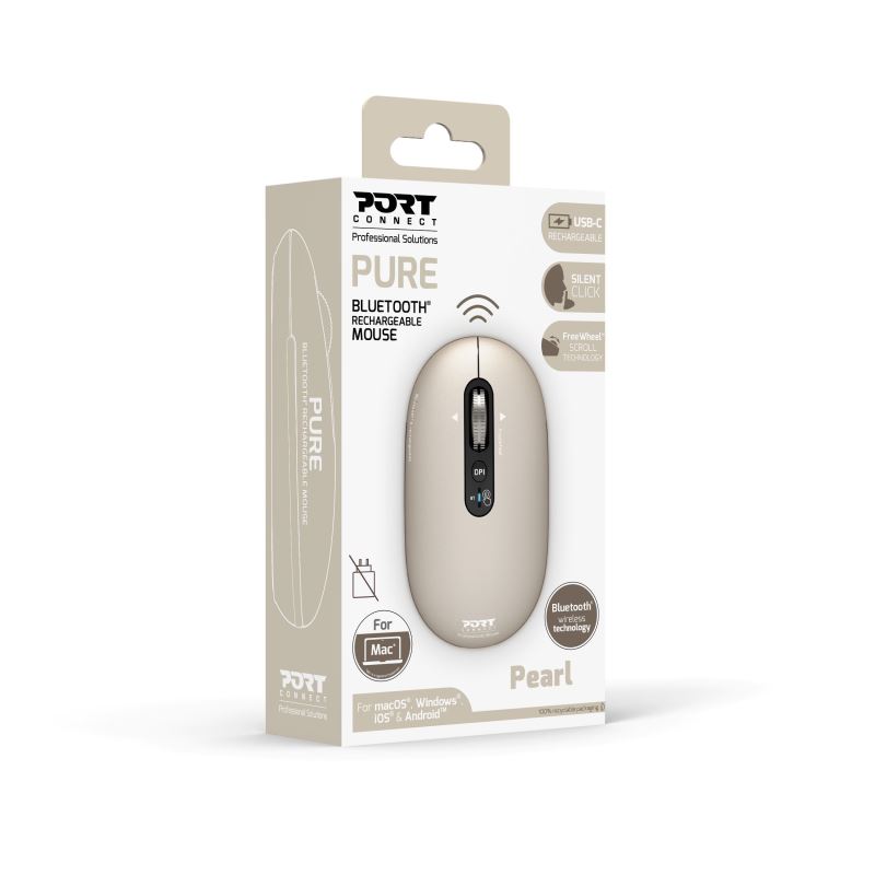 PORT CONNECT Pure MAC COLLECTION, bezdrátová dobíjecí myš, Bluetooth, FreeWheel, 3200 DPI,perleťová
