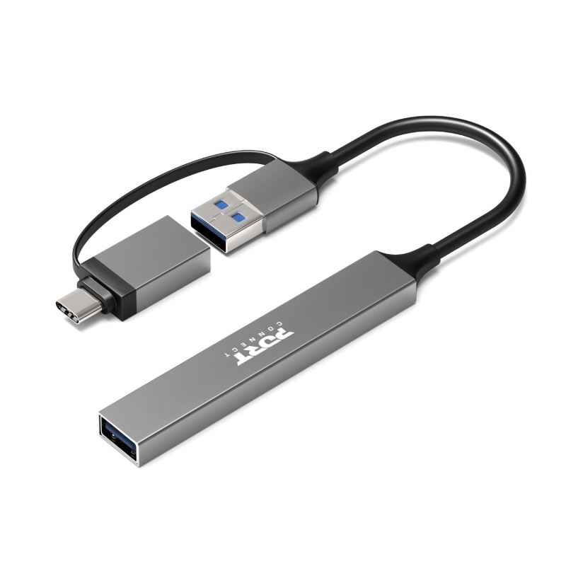 PORT CONNECT USB HUB, 1x USB 3.0 + 3x USB 2.0, USB-A/USB-C vstup, stříbrná