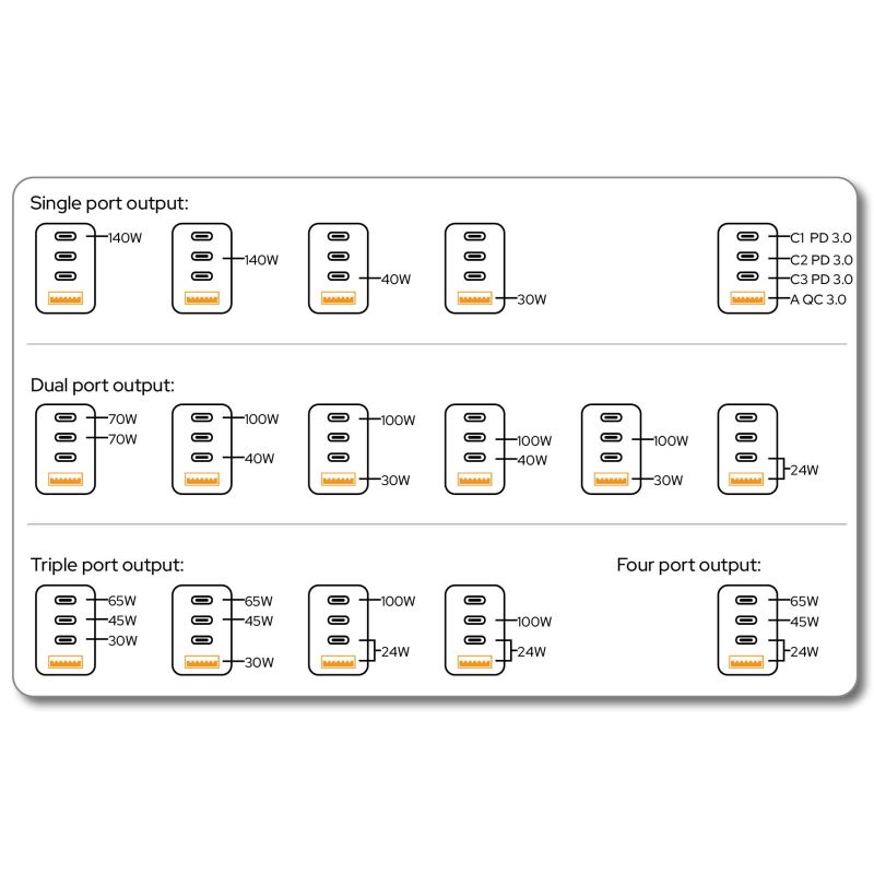 - USB-C1: PD 3.0 (PPS), max. 140 W