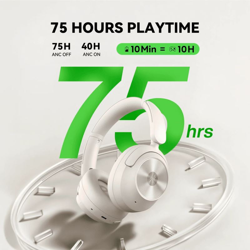 Battery: 75 h (ANC off) / 40 h (ANC on), quick charge 10 min = 10 h