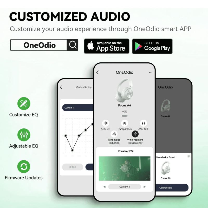 Block out the chaos. Drop into your zone. — With hybrid ANC up to -48dB, surrounding Cinema Mode, and Hi-Res audio with LDAC, the Focus A6 keeps your sound bold and your style sharp. Personalize your vibe with the smart app. Stay connected with Bluetooth 6.0 dual pairing. Power through your week with up to 75 hours of playtime.