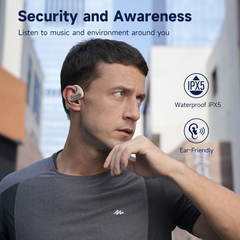 The open design with air conduction ensures comfortable and safe listening without isolation from the surroundings.