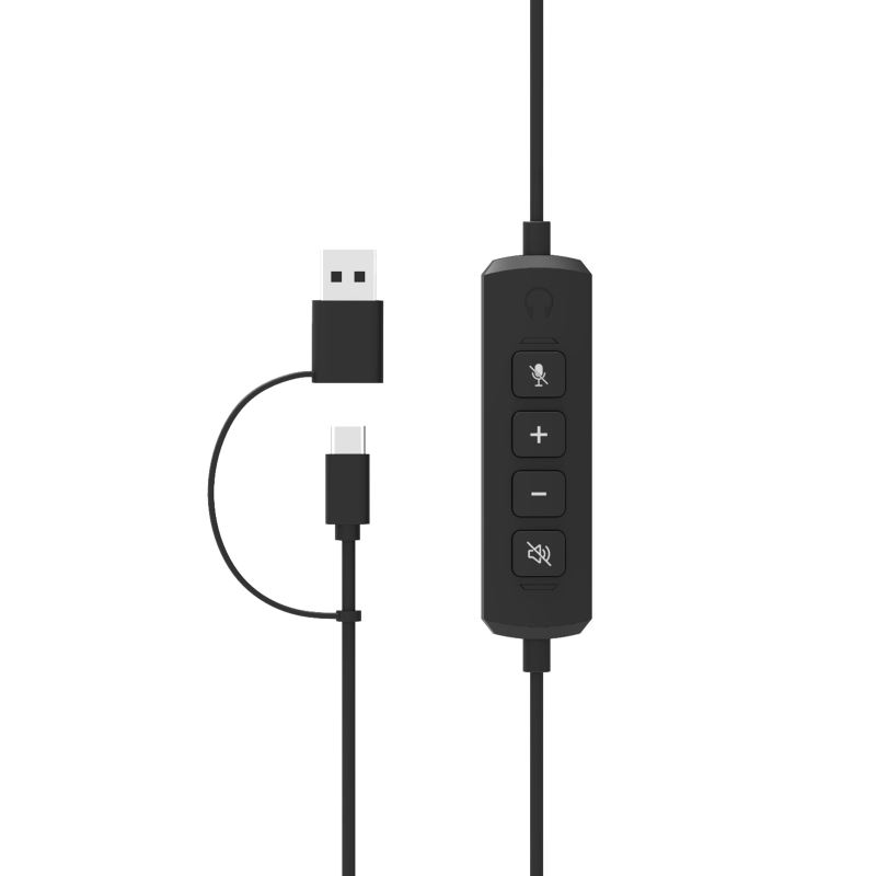 The controls are located directly on the cable for quick access to call control.