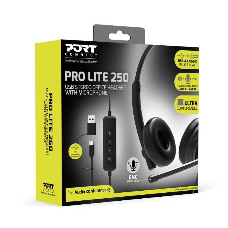 PORT CONNECT PRO LITE 250 is a professional stereo headset designed for everyday audio and video conferencing in the office environment.