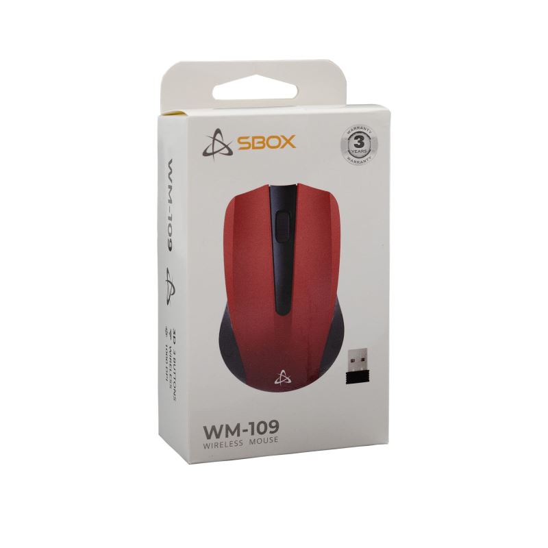 SBOX Wireless Mouse, 3D Optical, 1000 DPI, Red (WM-109R)