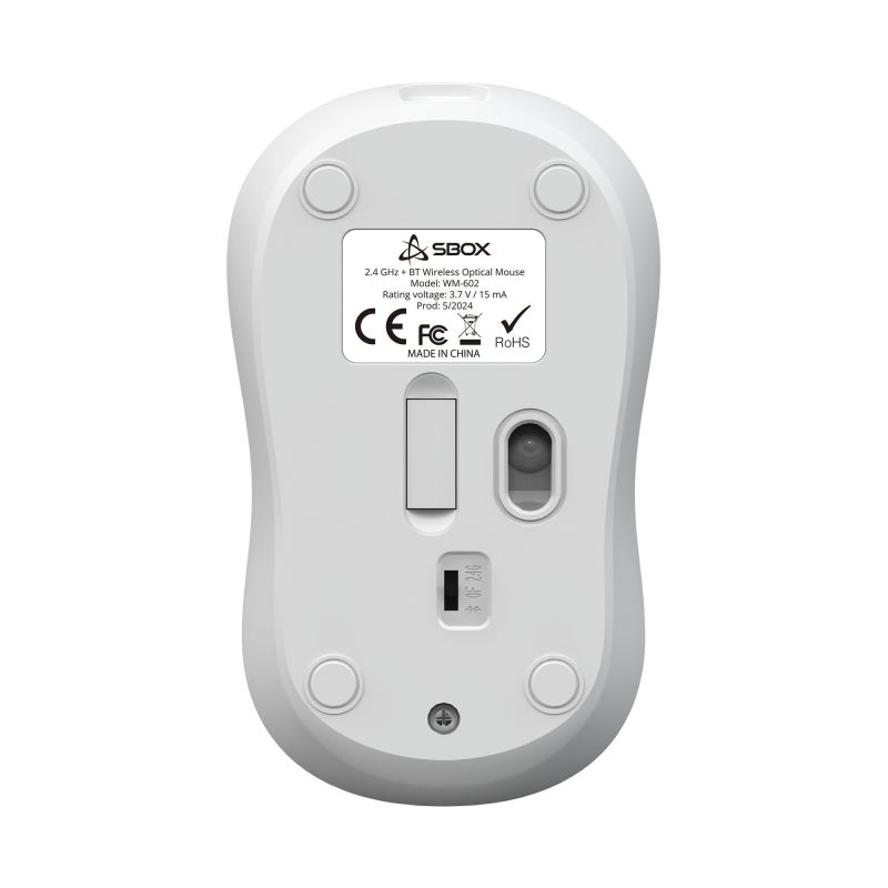SBOX WM-602 is a compact wireless mouse with dual connectivity that ensures smooth work and reliable performance in the office and on the go.