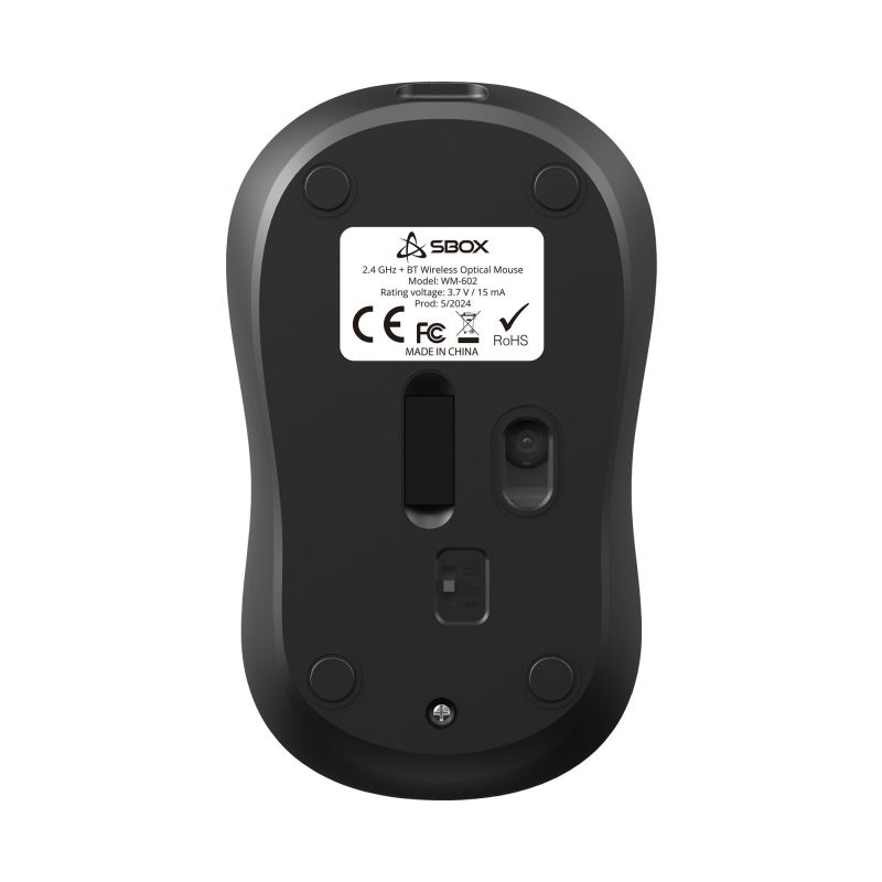 SBOX WM-602 is a compact wireless mouse with dual connectivity that ensures smooth work and reliable performance in the office and on the go.