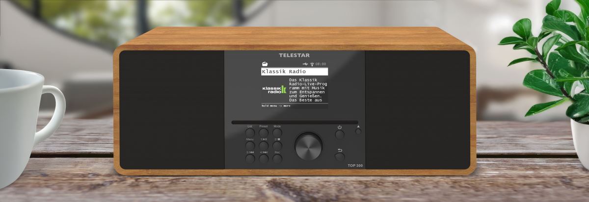 The Telestar TOP 300 combines DAB+ digital radio, FM reception, internet stations and CD player in one device.