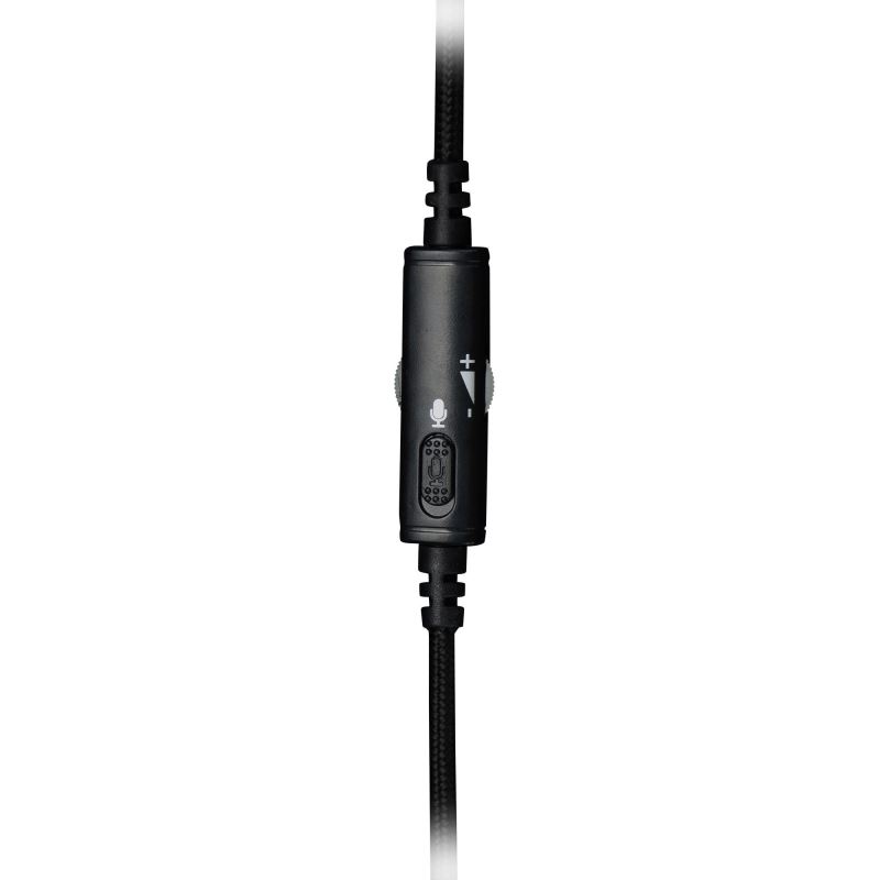The volume control and microphone switch are located directly on the cable.